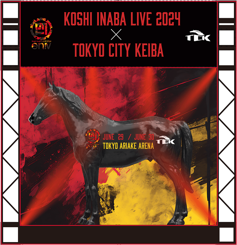 稲葉浩志とTCK(東京シティ競馬)のコラボレーション・フォトブースが、6月29日(土)、30日(日)に開催のKoshi Inaba LIVE 2024 〜enⅣ〜 有明アリーナ会場に登場!2日間限定の特別装飾が施された馬像とご自由に写真撮影が可能です。また、有明アリーナ会場内CD販売コーナーにて、ニューアルバム「只者」を購入した方限定のプレゼントキャンペーンも実施!