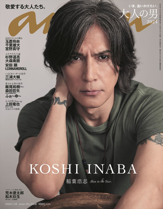 女性グラビア週刊誌「anan 2406号」(7月17日発売)の表紙に稲葉浩志が初登場いたします! 様々な角度から今の稲葉浩志を切り取った撮り下ろしのビジュアルと、35年以上に及ぶ音楽活動のこれまでとこれからに迫る自然体のインタビューで構成された全24ページに及ぶ大特集を掲載。どうぞお楽しみに!!